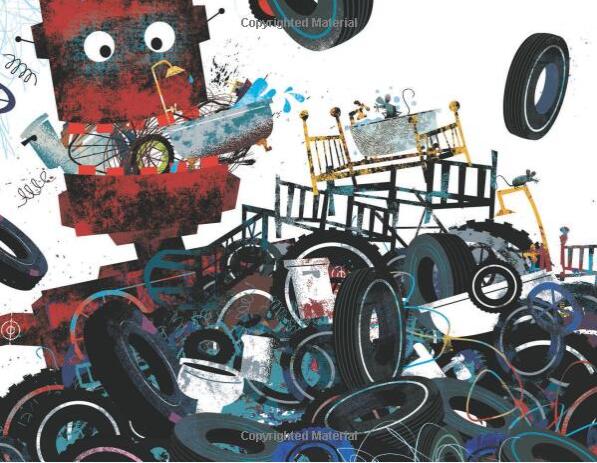Man the machines and help clean up the junkyard in this rousing robot story that encourages community building.